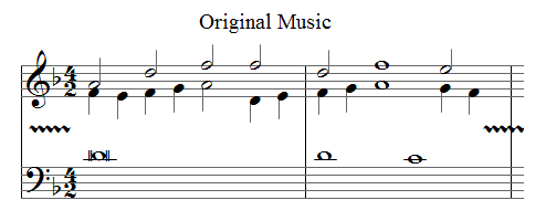 The auxiliary note is indicated by "A", the passing notes are indicated by "P" The two suspended notes move in parallel 6ths and are prepared and resolved correctly for a suspension. The F forms a compound 4th from the bass at the third beat of bar 2 and the A forms a 6th with the bass. These descend to form a 5th and 3rd with the bass as indicated in the figured bass notation. This effectively combines second species, third species and fourth species counterpoint in one simple example. This is a very simple example of how an underlying chord progression (D minor to C major) can be elaborated by voice leading. This elaboration involves a combination of voice leading devices and these are applied in layers. There are two layers involved here, because the arpeggios have to be applied first and the auxiliary notes and passing notes can only be applied once the arpeggios are in place. This illustrates the way elaboration can be built in layers and shows that some voice leading devices can have greater structural importance than others. The suspensions would, in this example, have to be applied first to accommodate the passing note in the last beat of the second bars shown. See latter sections for further examples of voice leading with combined patterns. Next Topic: Voice Leading and Melodic Embellishment |